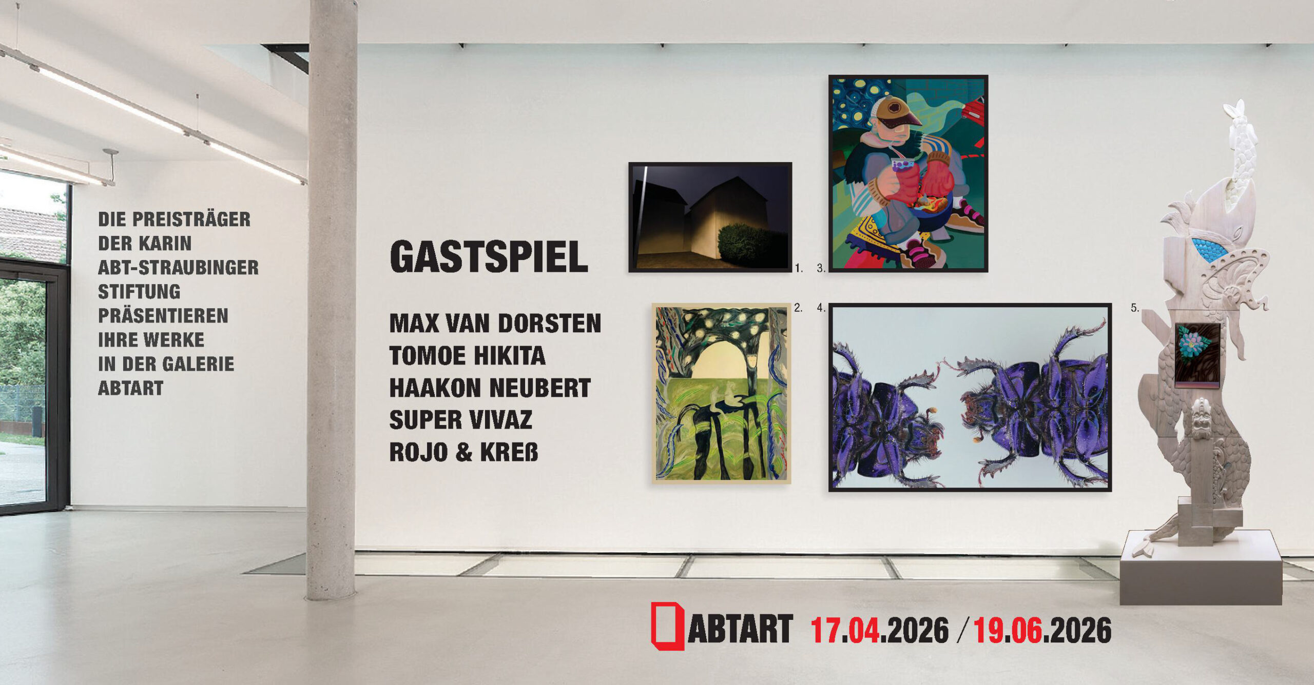 Eröffnet wird die Ausstellung » GASTSPIEL « mit den neuesten Arbeiten der Preisträgerinnen und Preisträger 2025/2026 der Karin Abt-Straubinger Stiftung.